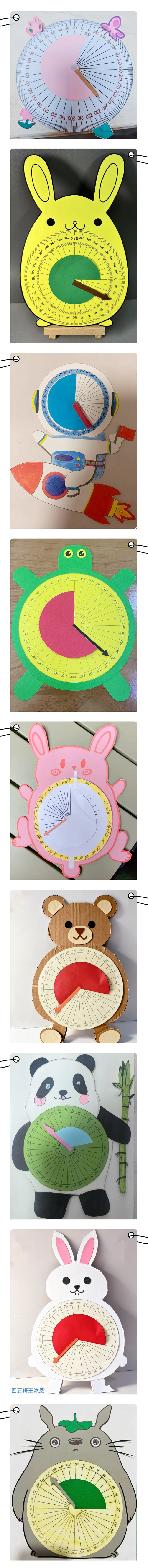 四年级的创意实践充满巧思 ——“饭量有数” 趣味量角器制作活动中,同学们将数学原理与创意手工巧妙结合:有的以小兔、小熊等动物造型为基底,刻度盘藏于动物腹部;有的设计可旋转的 “进食窗口”,通过指针转动模拟动物 “进食量”,让抽象的角度变化变得直观可感。在剪、折、拼、转的过程中,量角器的使用原理深深扎根于心。