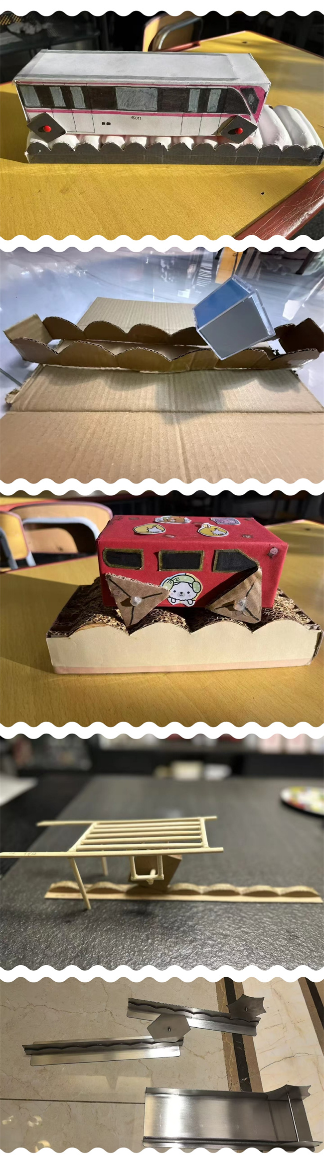 六年级的“车轮变形计”聚焦生活中的数学智慧,同学们围绕 “不同形状车轮的滚动特性”展开探究:设计圆形、三角形、正方形、正五边形等不同形状的车轮模型,通过对比实验观察滚动效果,分析形状与稳定性、流畅度的关系。在猜想、制作、实验、反思的过程中,不仅巩固了几何知识,更领悟到“圆形为何成为车轮首选”的生活逻辑,真切感受到数学与生活的紧密联结。