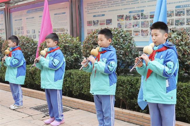 清晨的校门口,暖意融融。校领导及全体中层干部早早守候在此,他们面带微笑,热情地向每一位返校的同学挥手致意。与此同时,学校葫芦丝社团的同学们也列队而立,用悠扬婉转的乐声迎接小伙伴们的归来。一曲曲轻快的旋律在春风中飘荡,仿佛在为新学期奏响美好的序章。孩子们身着整洁的校服,背着书包,踏着乐声欢快地步入校园,一声声“老师好”“同学早”交织成最动听的晨曲。