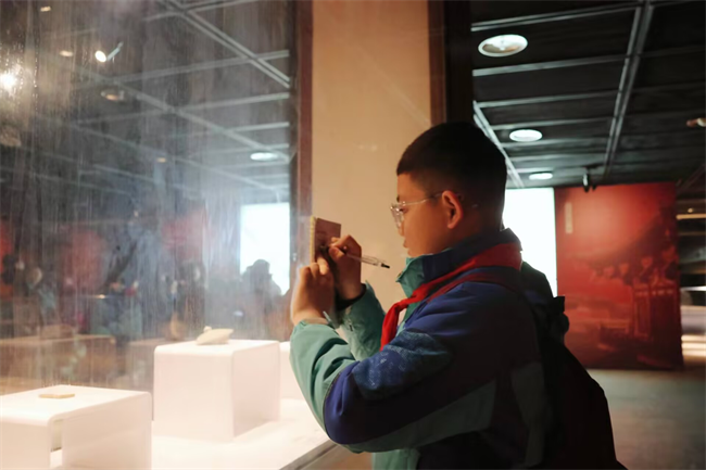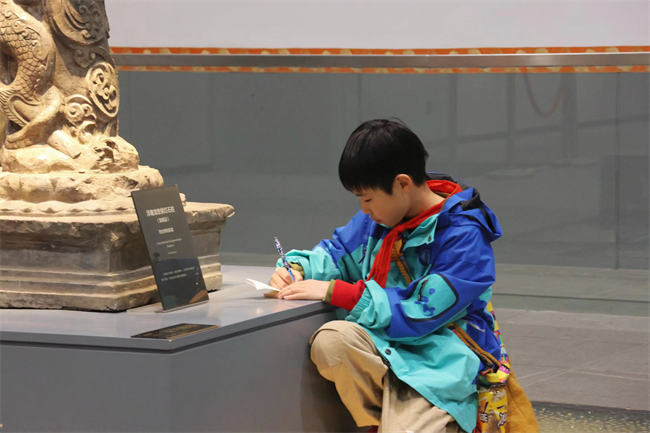 在丹凤门遗址博物馆,伴随着讲解员娓娓道来,同学们凝神静听,目光专注,认真聆听丹凤门作为“盛唐第一门”的历史渊源,了解五门道制的唐代建筑特色,看着保存完整的遗址遗迹,大家不时发出惊叹,纷纷拿起纸笔记录知识点,眼中满是对盛唐历史的好奇与向往。