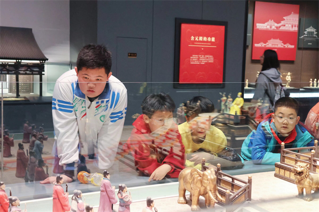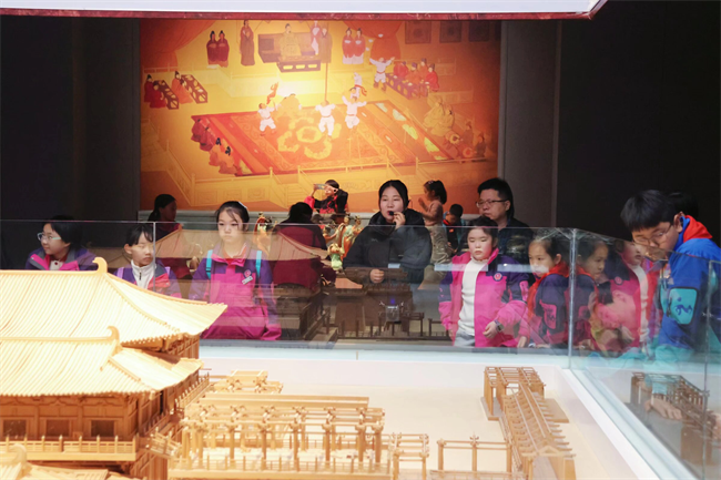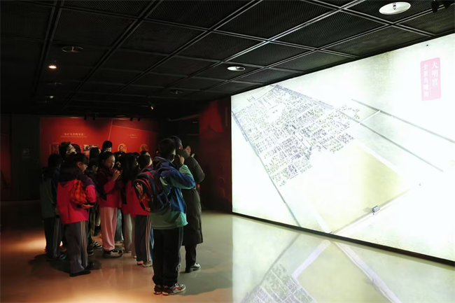 移步换景,师生们穿过御道广场,步入大明宫遗址博物馆。馆内丰富的文物与遗址展品,生动还原了大唐的宫廷生活与丝路繁华,同学们轻声交流所见所感,在一件件珍贵文物、一幅幅历史图景中,真切感受着大唐开放包容的时代风貌,体会着中华文明的博大精深。