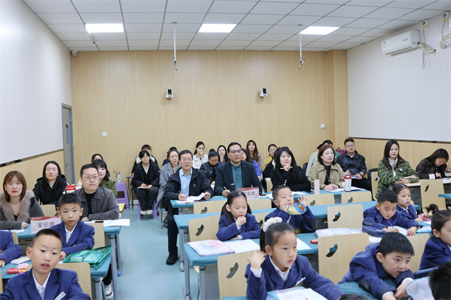 为进一步提升教师专业素养与课堂教学能力,以新课标理念深度引领课堂教学改革,扎实推进“三师课堂”建设,依托人工智能技术赋能数学课堂创新变革,2026年3月26日上午,西安未央锦园小学2025—2026学年度“六课工程”之“教学评优课”暨数学组三月份大教研活动如期举行,以研促教、以评提质,推动数学教学高质量发展。本次活动由数学教研组组长童皖怡老师主持,特邀西安市教育科学研究院小学数学教研员、正高级教师马俊华老师莅临现场,开展专业指导与精准点评。活动特别邀请授课班级家长代表全程参与听课观摩,与全体数学教师共同见证AI技术与数学课堂的深度融合,感受新课标下数学教学的创新魅力。全体数学教师认真听课、细致记录、深入思考,切实把教研活动转化为提升教学能力的有效途径。