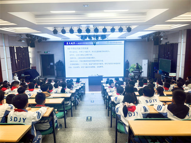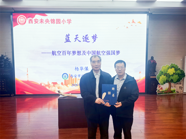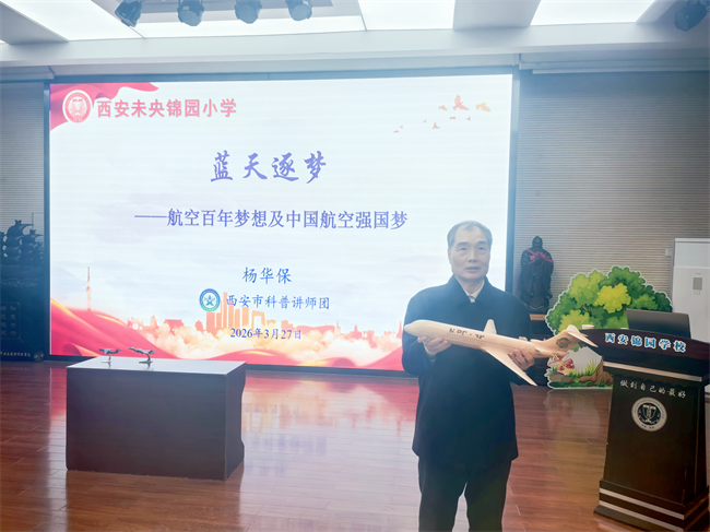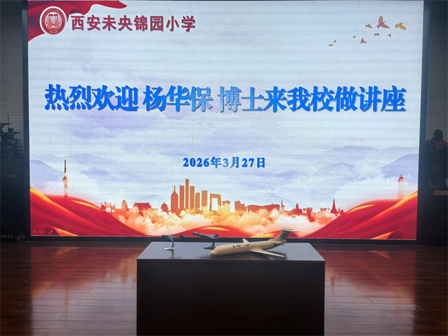 为普及航空科学知识,传承航空报国精神,厚植学生家国情怀,引导学生深入了解航空百年发展脉络与中国航空强国建设新征程,充分发挥博士人才示范引领作用,激发学生投身国家建设的使命担当与奋斗热情,2026年3月27日,西安未央锦园小学联合西安市科学技术交流馆,特邀西安市科普讲师团成员杨华保博士走进校园,开展“蓝天逐梦——航空百年梦想及中国航空强国梦”主题科普讲座,为学生们带来一场趣味盎然的航空盛宴。