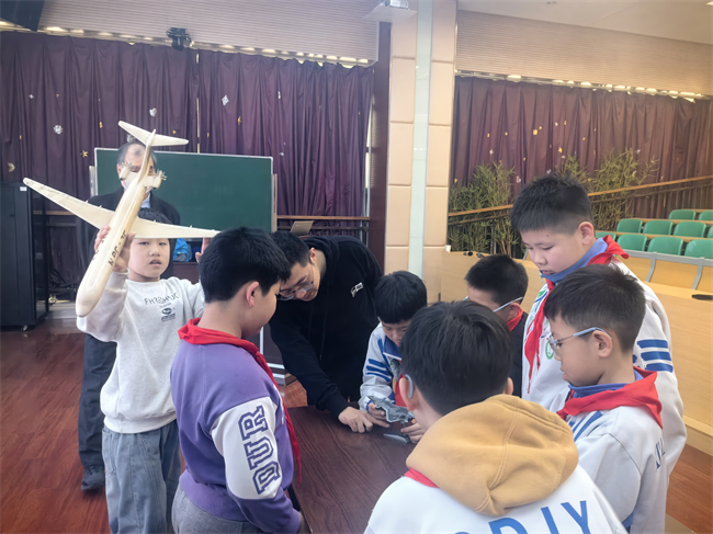 活动伊始,杨博士以贴近生活的问题切入,瞬间点燃学生们的探索热情,接着围绕航空的基本概念、航空的发展简史、中国的航空强国梦三大板块展开,用通俗易懂的语言讲解航空与航天的区别,介绍飞机的分类与飞行原理,让抽象知识变得直观易懂,带领孩子们回顾人类逐梦蓝天的百年历程,从远古向往到莱特兄弟试飞,感受航空发展的磅礴力量。