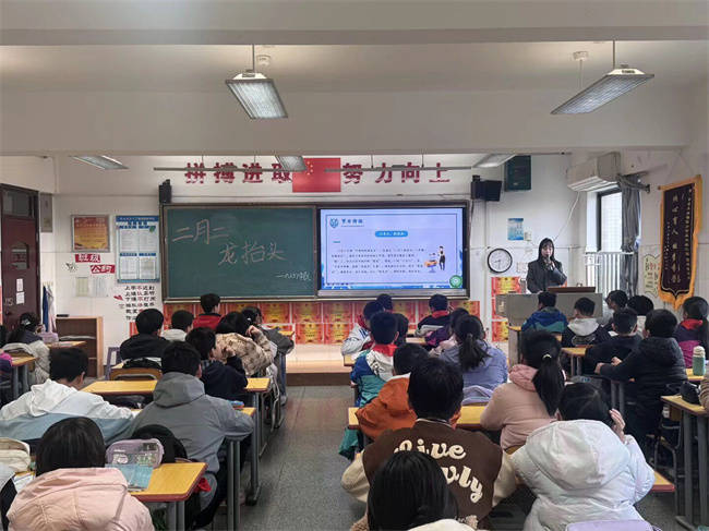 课堂上,同学们深入了解“龙抬头”的节日由来、传统习俗与文化寓意,在趣味学习中感知中华优秀传统文化的独特魅力。此次活动以节日育德、以文化润心,不仅丰富了校园德育生活,更激励全体锦园学子以龙马精神、昂扬姿态向阳成长,让传统文化在校园落地生根、薪火相传。