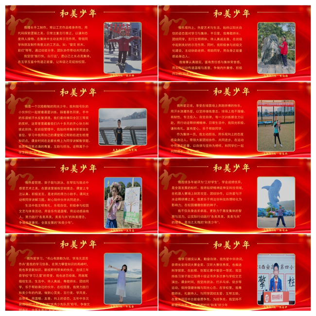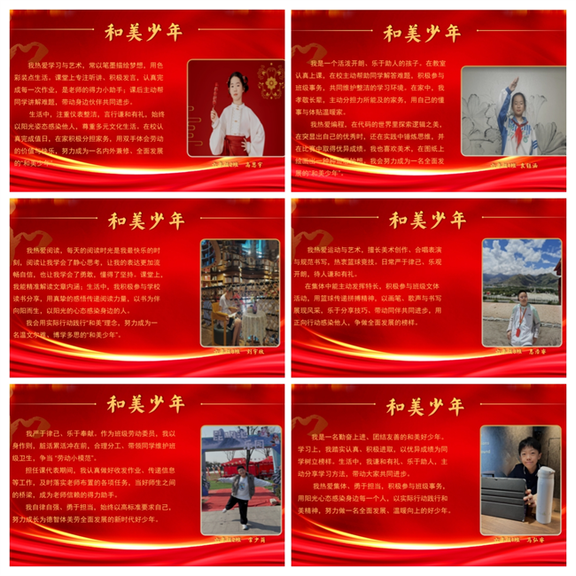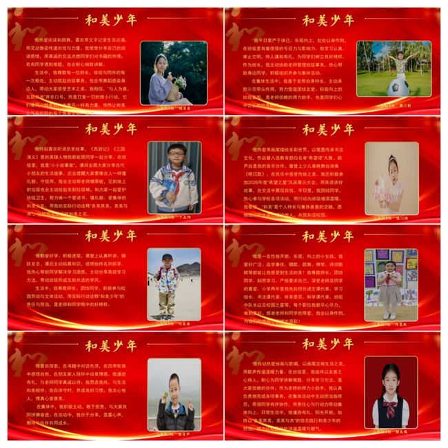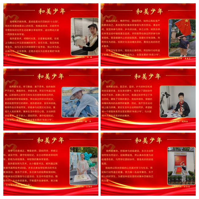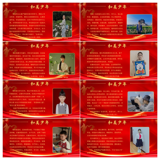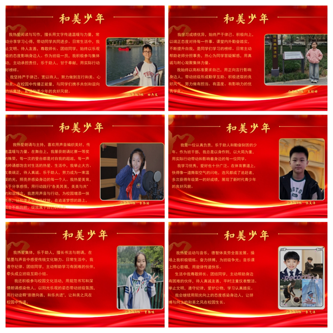 此外,校园电子屏持续滚动展示和美少年的风采与先进事迹,以直观生动的方式定格榜样瞬间、彰显少年风采。这不仅是对同学们过往努力的肯定与鼓励,更是以可视化的形式发挥榜样的示范引领作用,让全校同学在日常校园生活中便能感受榜样力量,主动向优秀看齐,在校园中营造出崇德向善、见贤思齐、向美而行的浓厚氛围,让多元评价的成果看得见、摸得着,让立德树人的育人成效持续彰显。