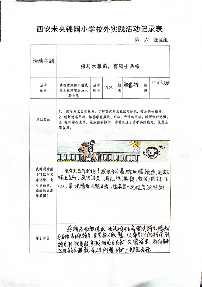 萌娃遇小马 骑士初体验 ——锦园小学第六社区组开展社会实践活动
